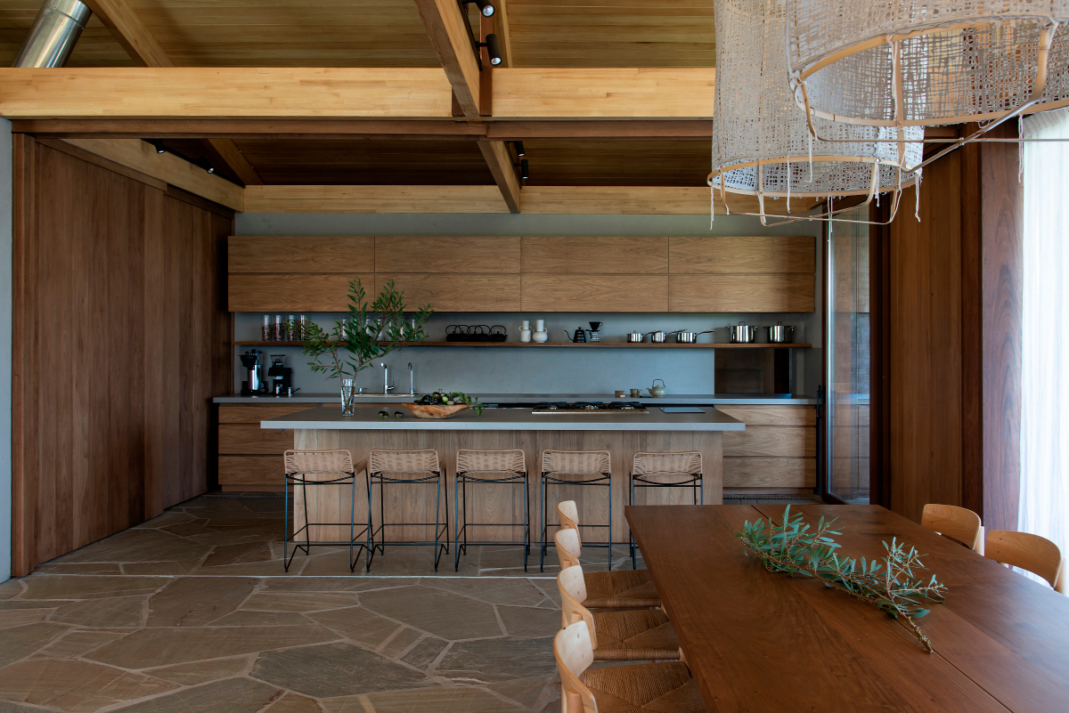 Una combinación de maderas de laurel y lapacho al tono dialogan entre la