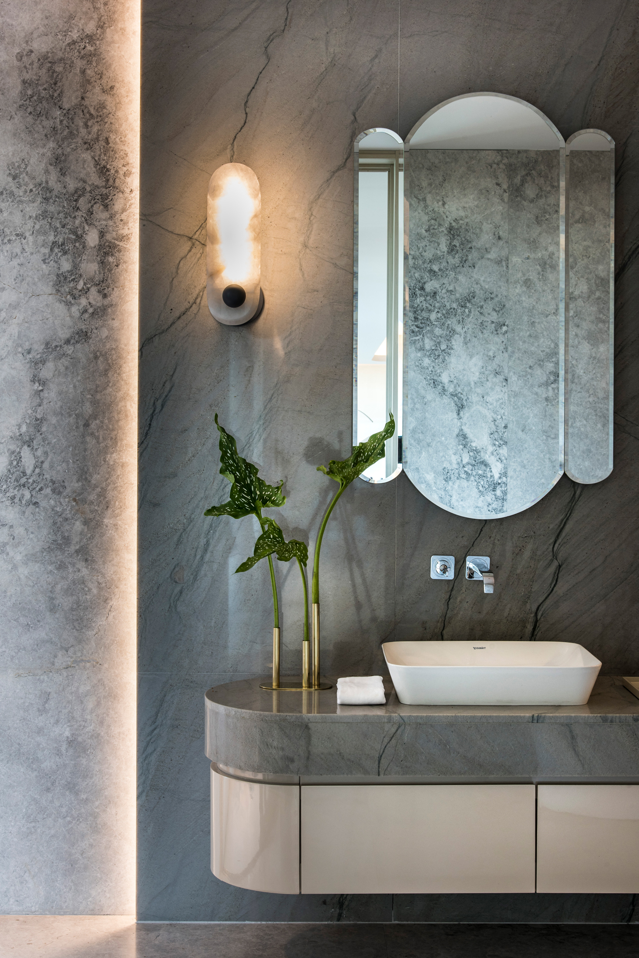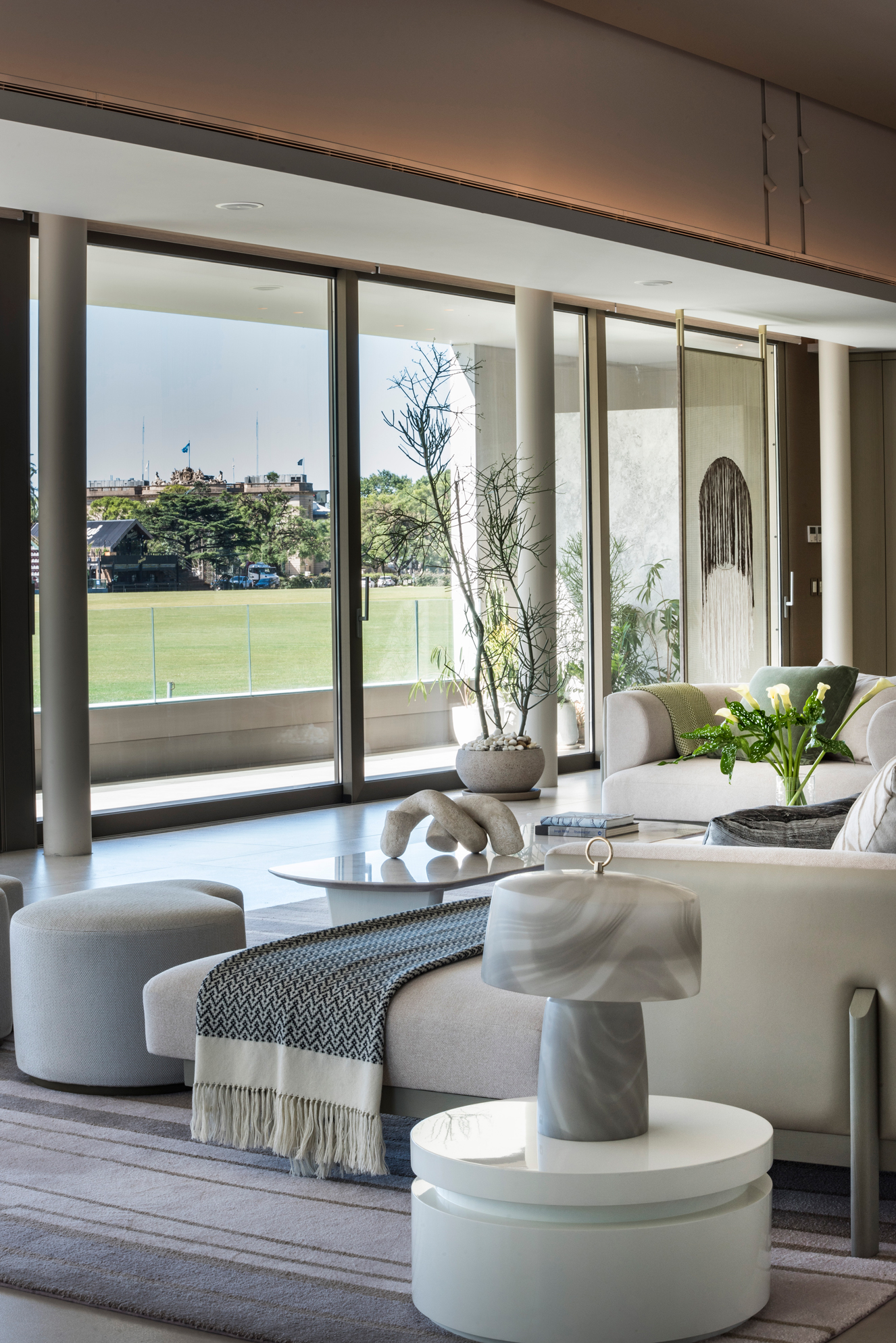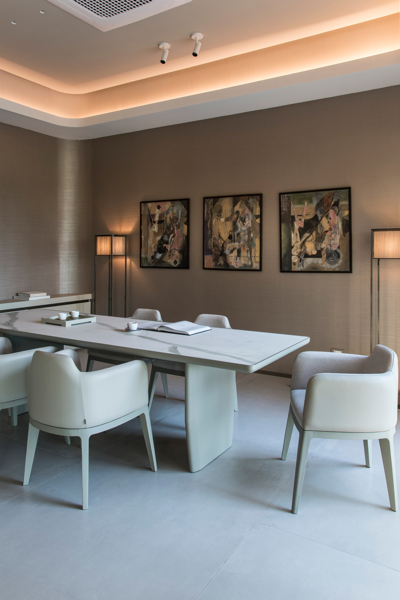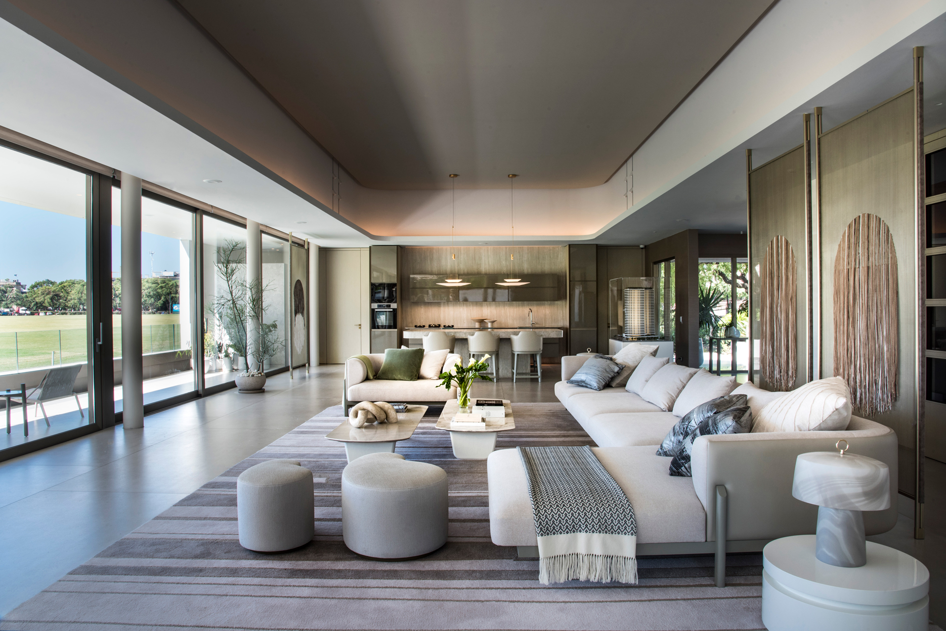Un espacio de identidad para un Sales Point & Events que en 400m2 desafía al visitante a develar el espíritu del proyecto a desarrollar de las torres Decó Polo. Este gran espacio se define entre suaves cielorrasos, sofisticados equipamientos y muros entelados que emulan los dibujos marmóreos diseñados especialmente por el creador Textil Martín Churba.