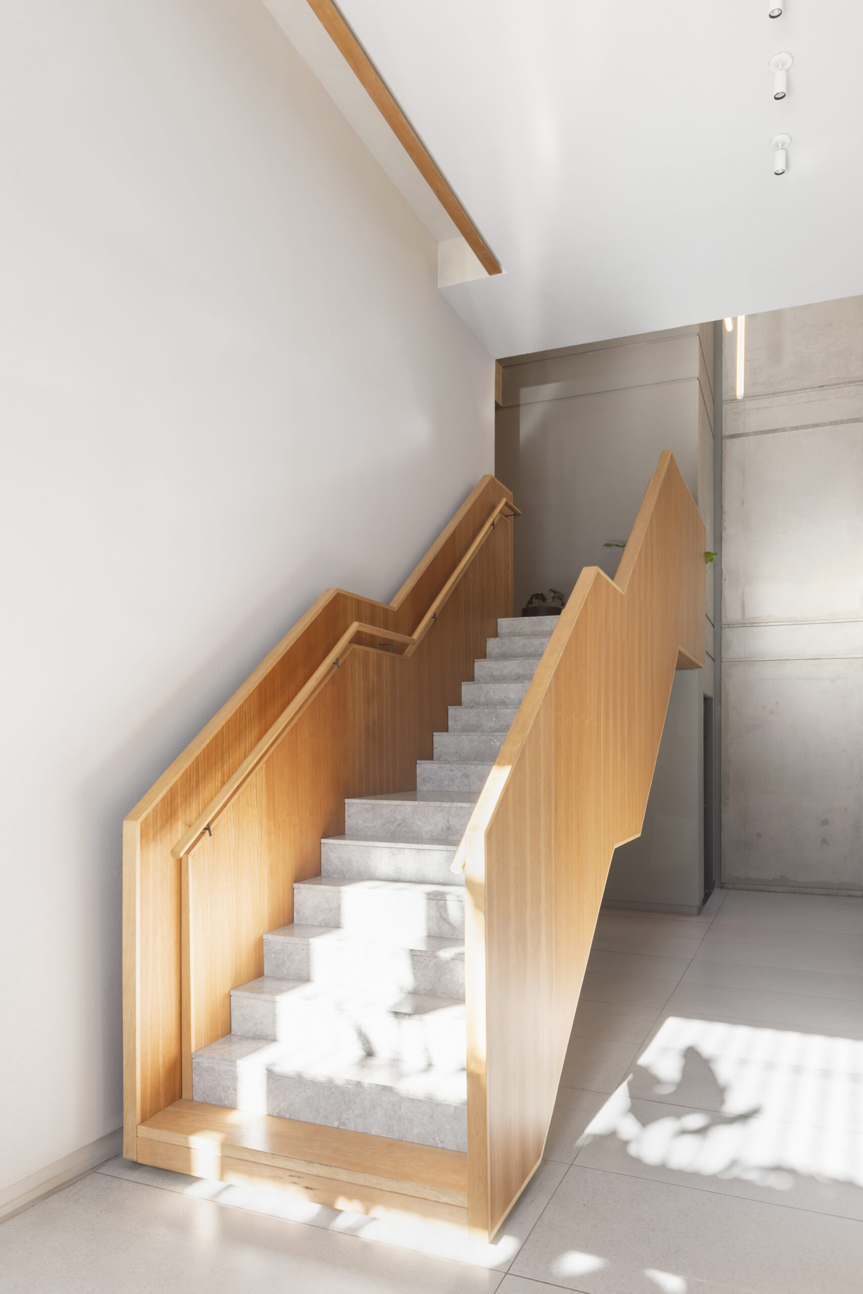 A veces me interesan mas los proyectos cuando lo que resuelve el espacio es la presencia de la escalera, ese objeto que se carga de diseño y que se vuelve el gran protagonista en la escena.