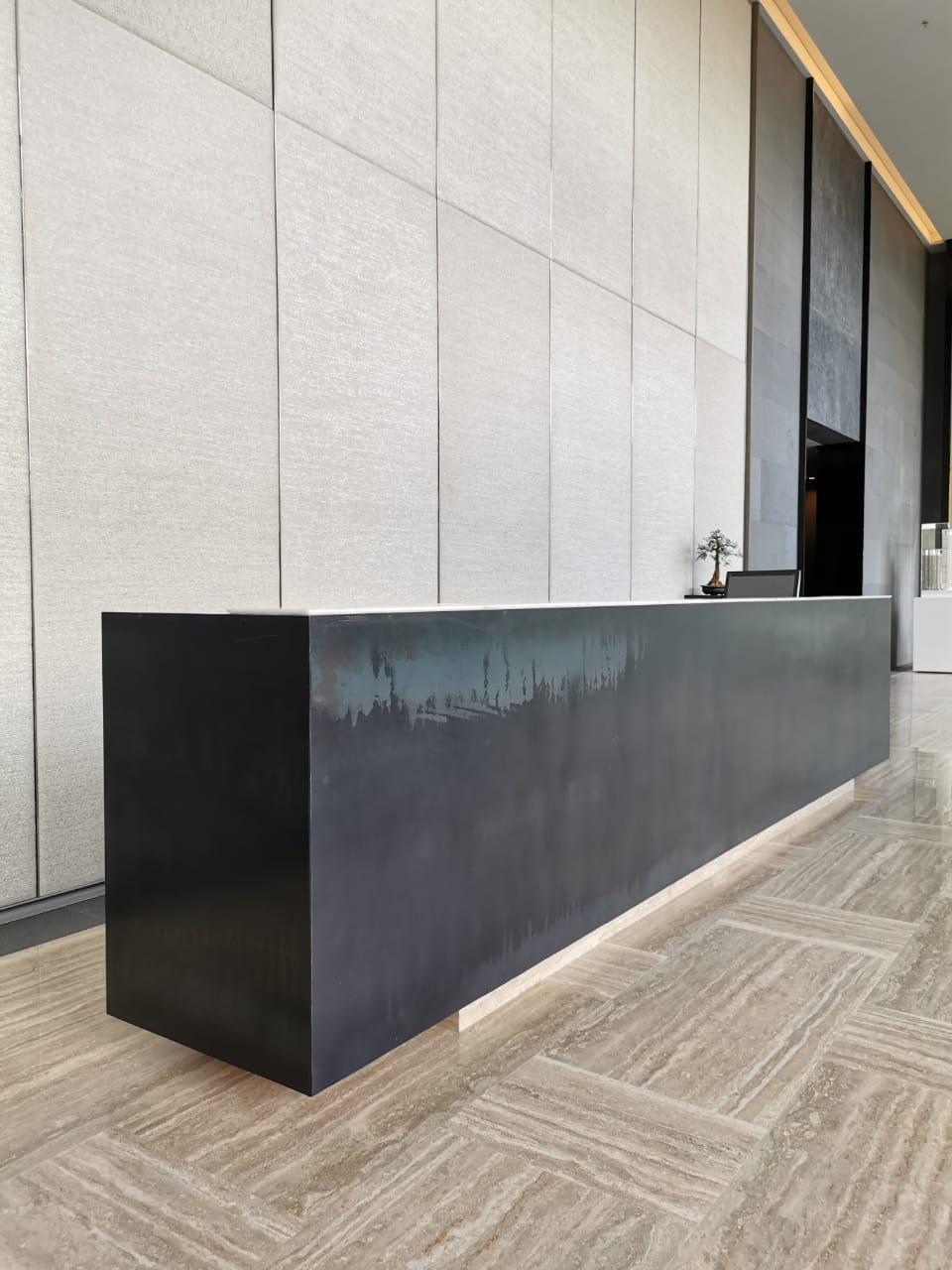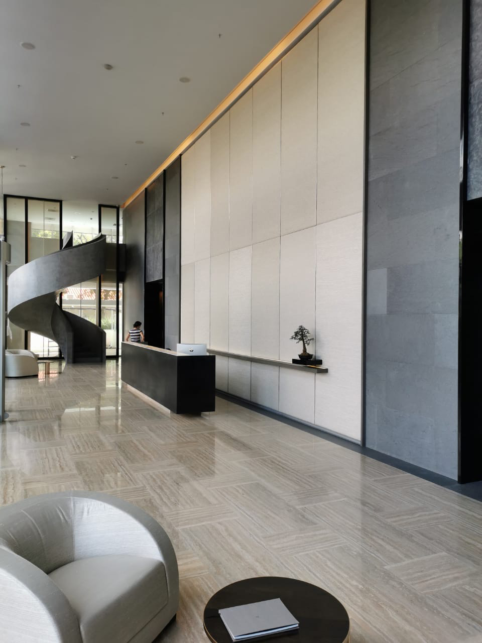 Uno de los trabajos que definieron las superficies de este proyecto fueron los múltiples diseños de trabados, formatos y combinaciones de direcciones aplicados a los materiales.